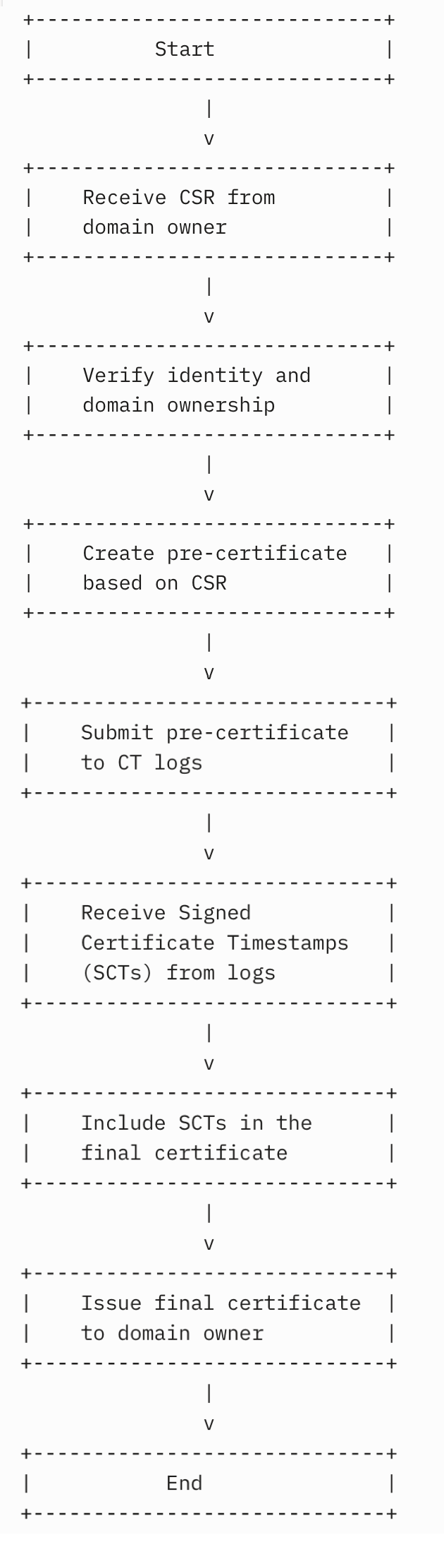 Based on RFC 6962, Certificate Transparency makes public all issued certificates in the form of a distributed ledger, giving website owners and auditors the ability to detect and expose inappropriately issued certificates.